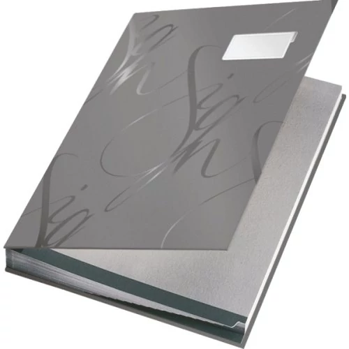 Nagyon elegáns, vastag karton aláírókönyv, kívül színes, belül szürke borítással, számlák és egyéb jóváhagyást igénylő dokumentumok rendszerezéséhez. Egyedülálló megjelenés és friss színvilág a modern irodai környezet számára. Selyemfényű, laminált borító a tartós használat érdekében. 18 merev speciális elválasztólap, a lapok kicsúszását akadályozó érdes felülettel. Címketartó az aláírókönyv megszemélyesítéséhez (pl. az osztály vagy a személy nevének feltüntetéséhez). Lyukak az elválasztólapok közepén a tartalom ellenőrzésére. Méret: A4, beosztás: 18 részes.