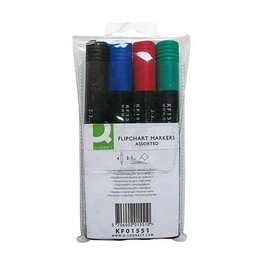 Ideális flipchart papírokhoz, mert a tinta nem üt át a papíron. Klipszes kupakkal. Kerek hegyű, 2-3 mm-es vonalvastagsággal. 4db-os készlet: kék, fekete, piros, zöld