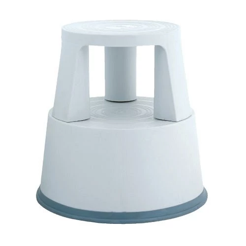 Három kis keréken guruló fellépőzsámoly, amely a fellépő személy súlyától lesüllyed és fixen áll a talajon. Terheletlen állapotban gurítható. Alsó gumiszegély a bútorok védelmében. Magasság: terhelés nélkül: 43 cm. Terhelve: 41,5 cm. Felső átmérő: 29,5 cm. Alsó átmérő: 44,5 cm. Súly: 2,9 kg. Maximum 150 kg-ig terhelhető.