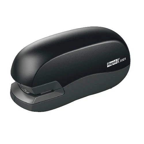 Kompakt méretű elektromos tűzőgép asztali használatra irodákban, recepciókon és otthon. Elöltöltős szerkezet. Max. tűzési kapacítás: 20 lap (80 g-os). Adapterrel (tartozék) működtethető. 24/6 és 26/6 Rapid Strong tűzőkapcsokhoz. 2 év garancia Rapid tűzőkapcsok használata esetén.