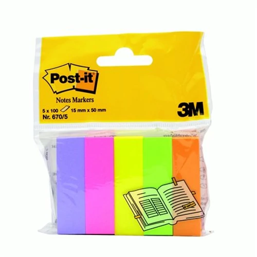 Post-it 670/5 jelölőlap 15x50mm 100lap 5tömb neon