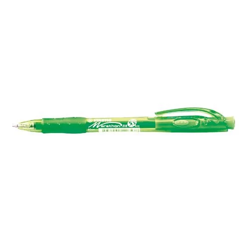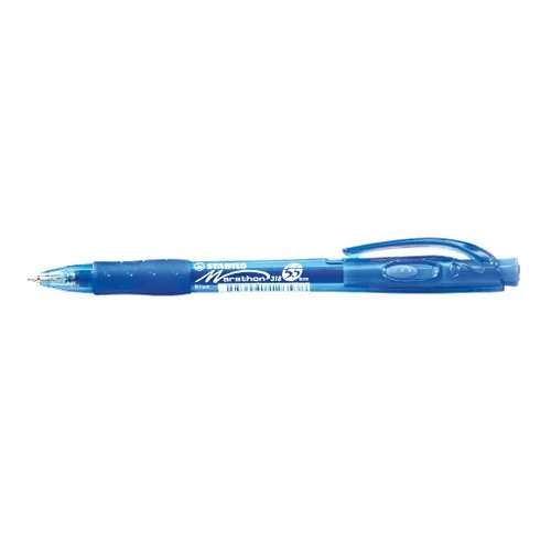 Nyomógombos golyósirón, ergonomikus, gumírozott fogózónával, a tolltest színével egyező írásszínekben. Extra íráshossz: 5.500 m. Vonalvastagság: 0,38 mm. Betét: 5024701, Marathon.