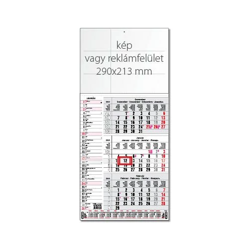 Speditőr naptár, 1 tömbös 3 havi, méret: 290 x 628 mm
