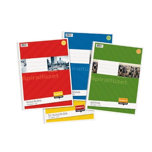 Hagyományos spirálfüzetek a magyar szabványnak megfelelő lineatúrákkal, magas fehérségű, teljesen klórmentes, környezetbarát papírból.