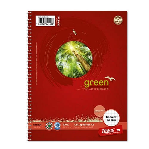 Spirálfüzet A/5 160lap kockás Kollegblock Ursus Green