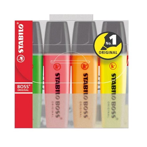 Európa első számú szövegkiemelője a STABILO BOSS ORIGINAL. Kiváló kiemelő-teljesítmény és puha vonalvezetés jellemzi. Kiszáradás elleni védelme akár 4 órán át tartó folyamatos használatot tesz lehetővé. *Átlagos íráshossz: 350-375 m. Vonalvastagság: 2-5 mm. *Szobahőmérsékleten tesztelve.